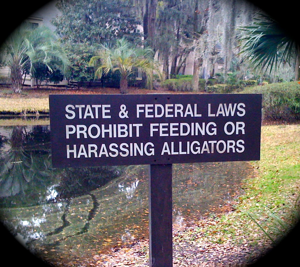 While working on a video production in gorgeous Hilton Head, South Carolina, a few years ago, I happened upon this sign. It was posted between the gardens of two very nice homes in a greener-than-green suburb laced with creeks, lagoons and velvety golf fairways. What made me think of this photo was anticipating spring’s return of wildlife in our Southern Ontario gardens.