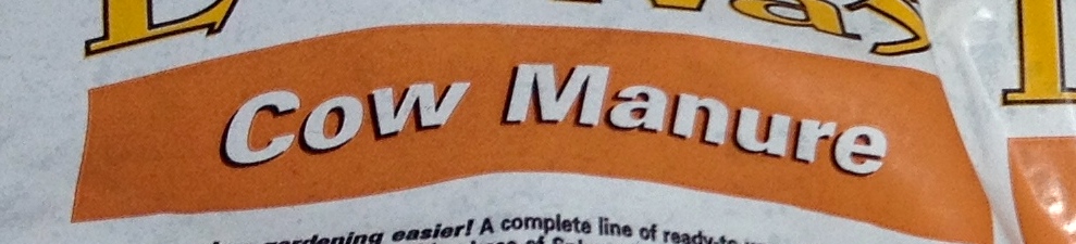 So I went to a couple of garden centres and took some cellphone snaps of the ingredients lists on some different packaged manure options. I found bags emblazoned with “Cow Manure” and I also found bags saying “Cow Manure” in big letters and, in much smaller letters, the word “compost”. Then I did a little digging. Here’s the poop. (Sorry. Couldn’t resist.)