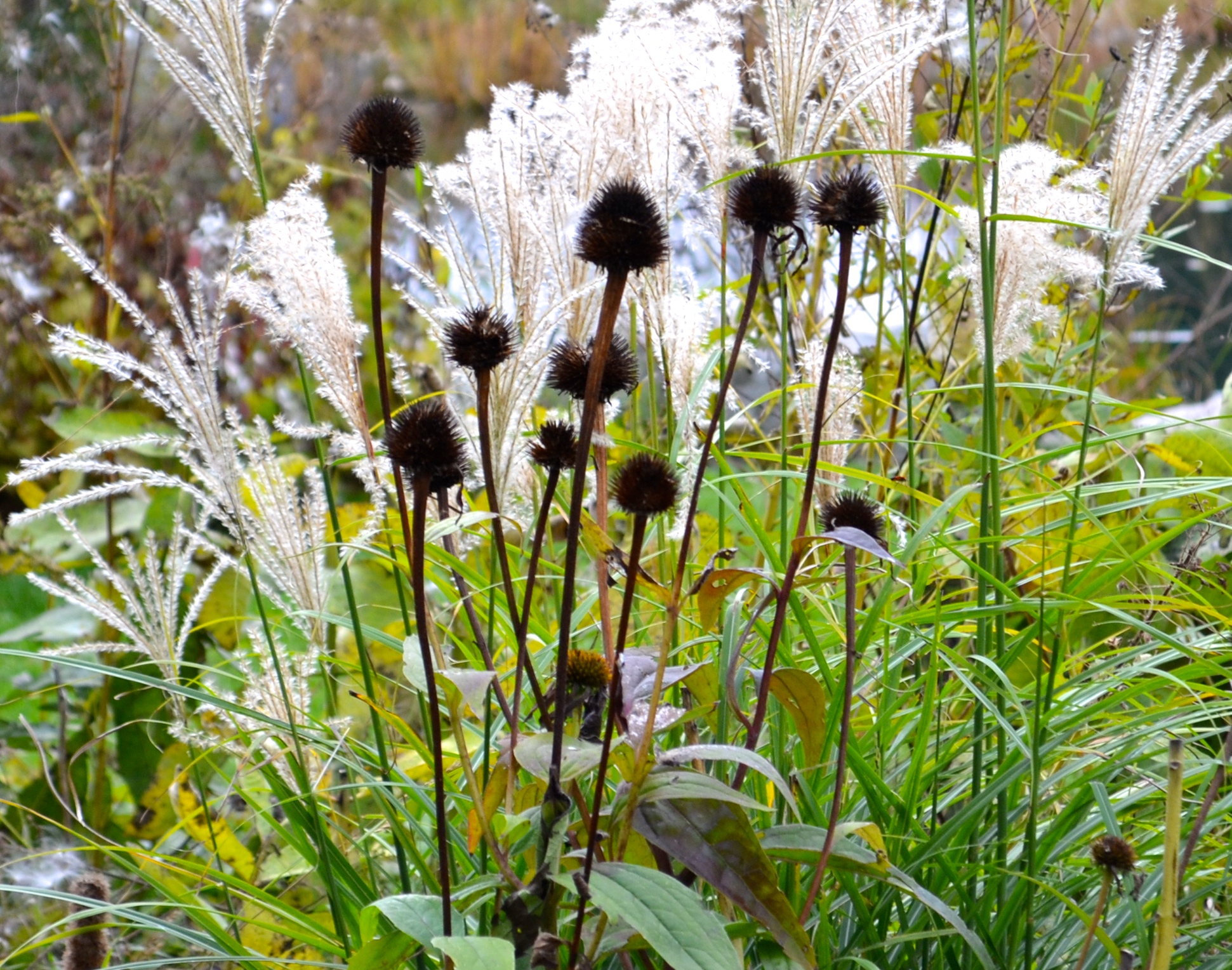 And if you’re thinking of giving the seedheads a good shake to collect the seeds and store them indoors until next spring, keep this in mind. In a recent conversation with Wildflower Farm doyenne and author of Taming Wildflowers, Miriam Goldberger, she reminded me that seeds like those from Echinacea purpurea need to go through winter’s brutal freeze/thaw to kick start the growing process. Here’s how she explains it, so eloquently in her book: