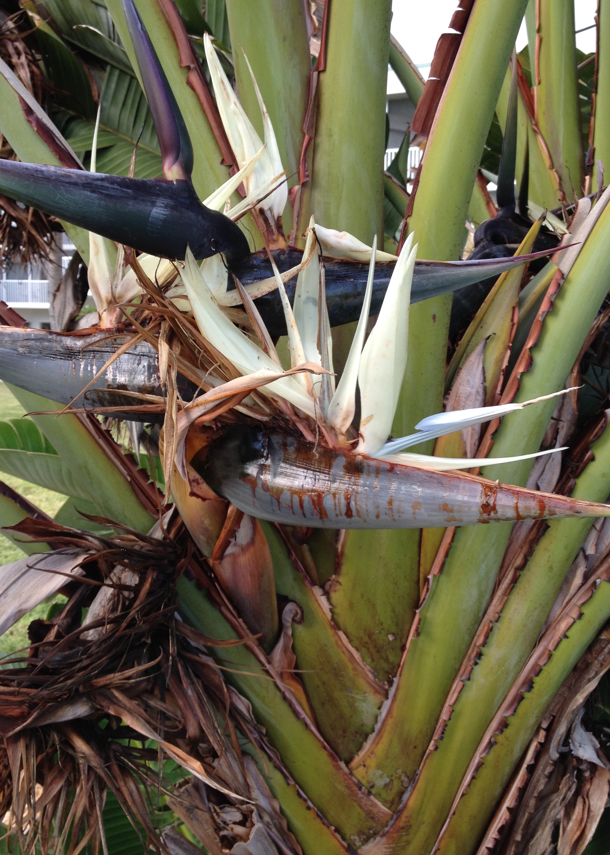 A Bird Of Paradise plant has several large blooms.