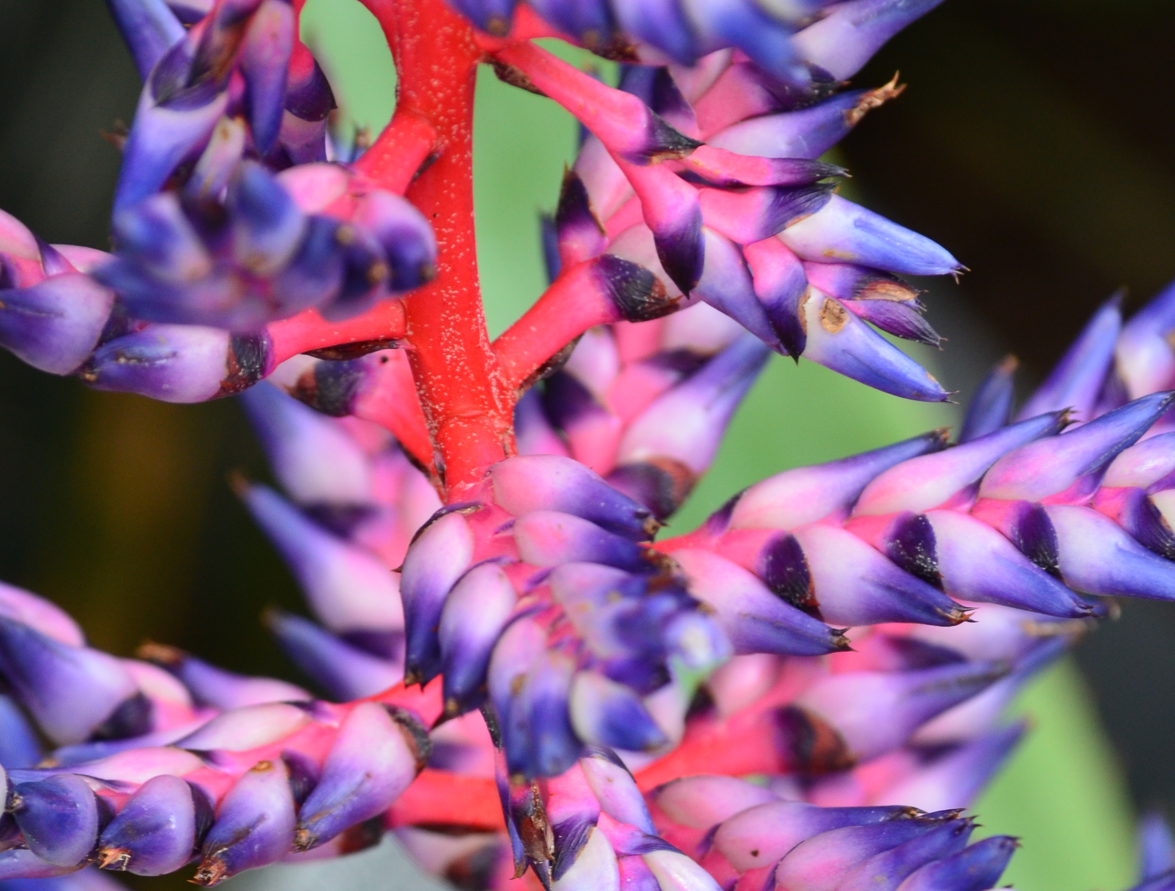 The eye-searing colours of Aechmea ‘Blue Rain’ will make bromeliad lovers of us all. This one was riveting on with it’s flower spike towering to waist height.