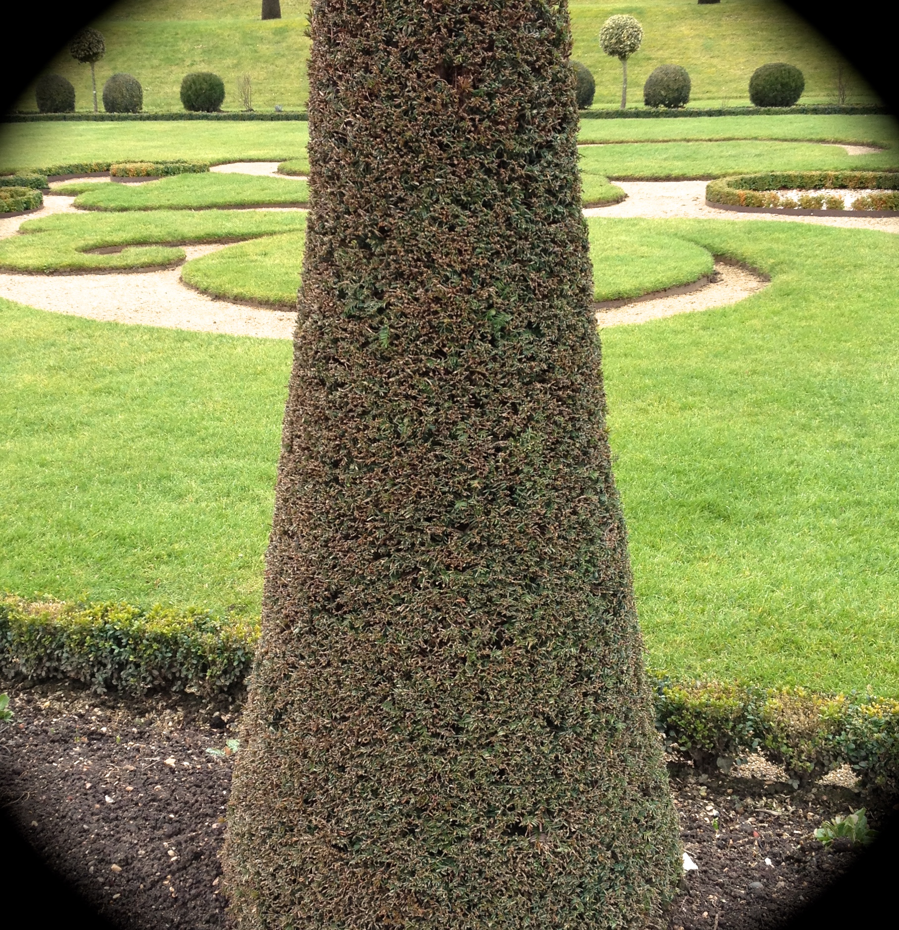 A close up of a shrub which has been carefully pruned.