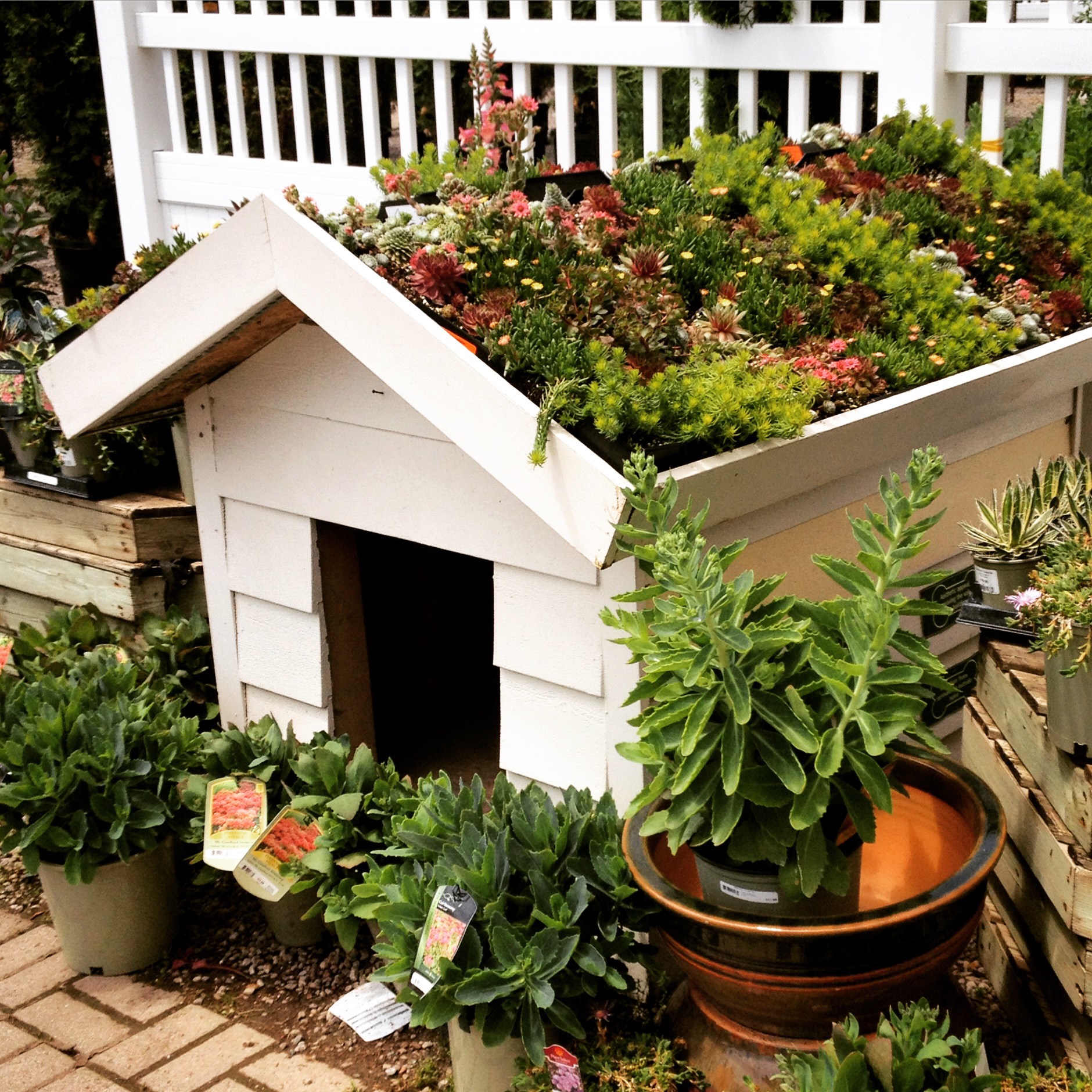 I saw this live roof dog house at a local garden centre. I love the idea though I don’t think it would survive an Ontario winter. But, if you’re flush with cash, you could create a new roof every spring.