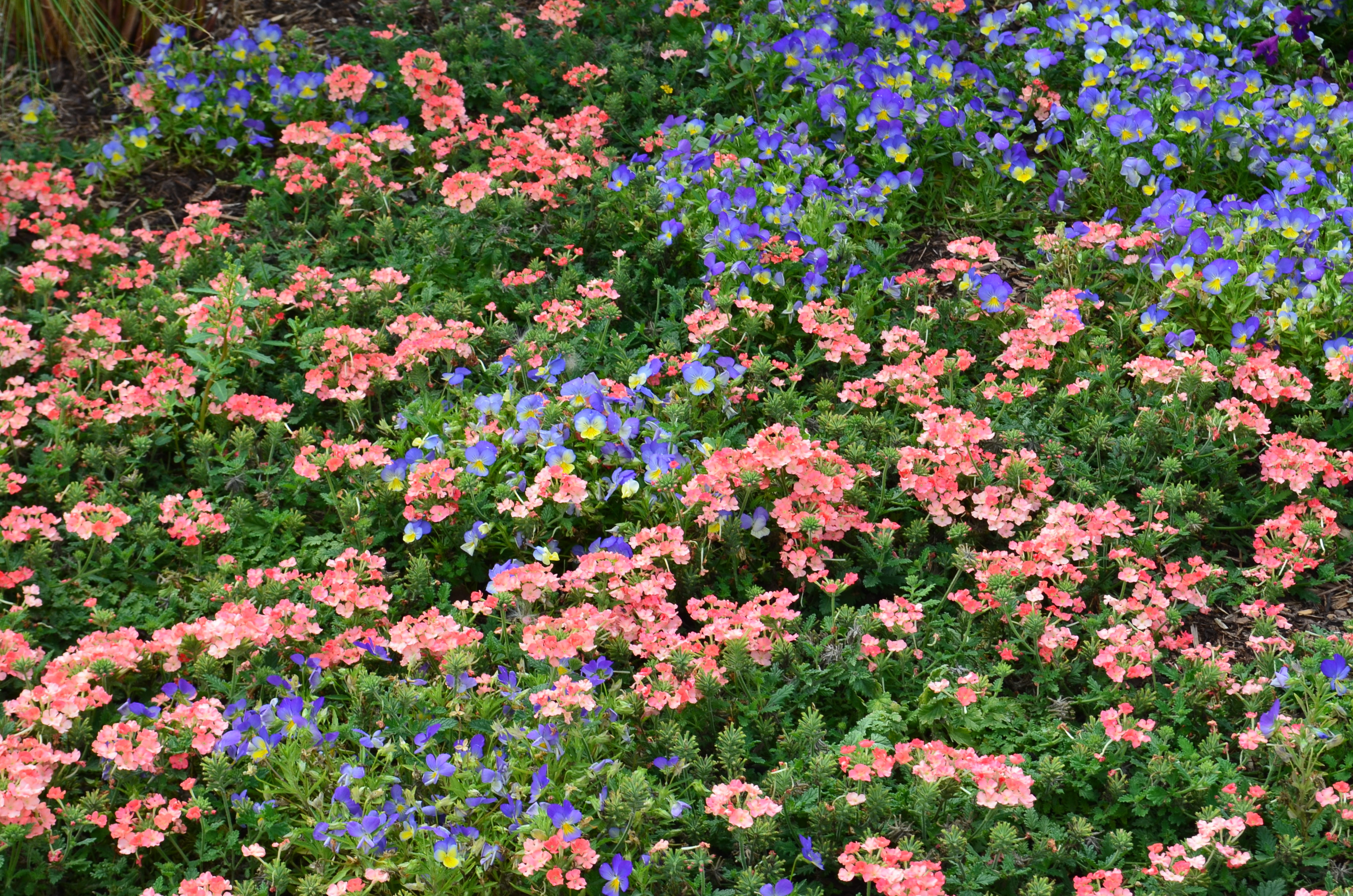 Superbe Royale Peachy Keen Improved verbena interplanted with Anytime Iris Pansiola, both from Proven Winners.