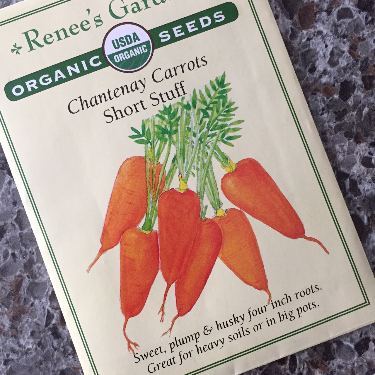 Short Stuff Chantenay carrots from Renee’s Garden are stubby jewels perfect for container plantings. They’ll be ready to harvest in 75 days or less.