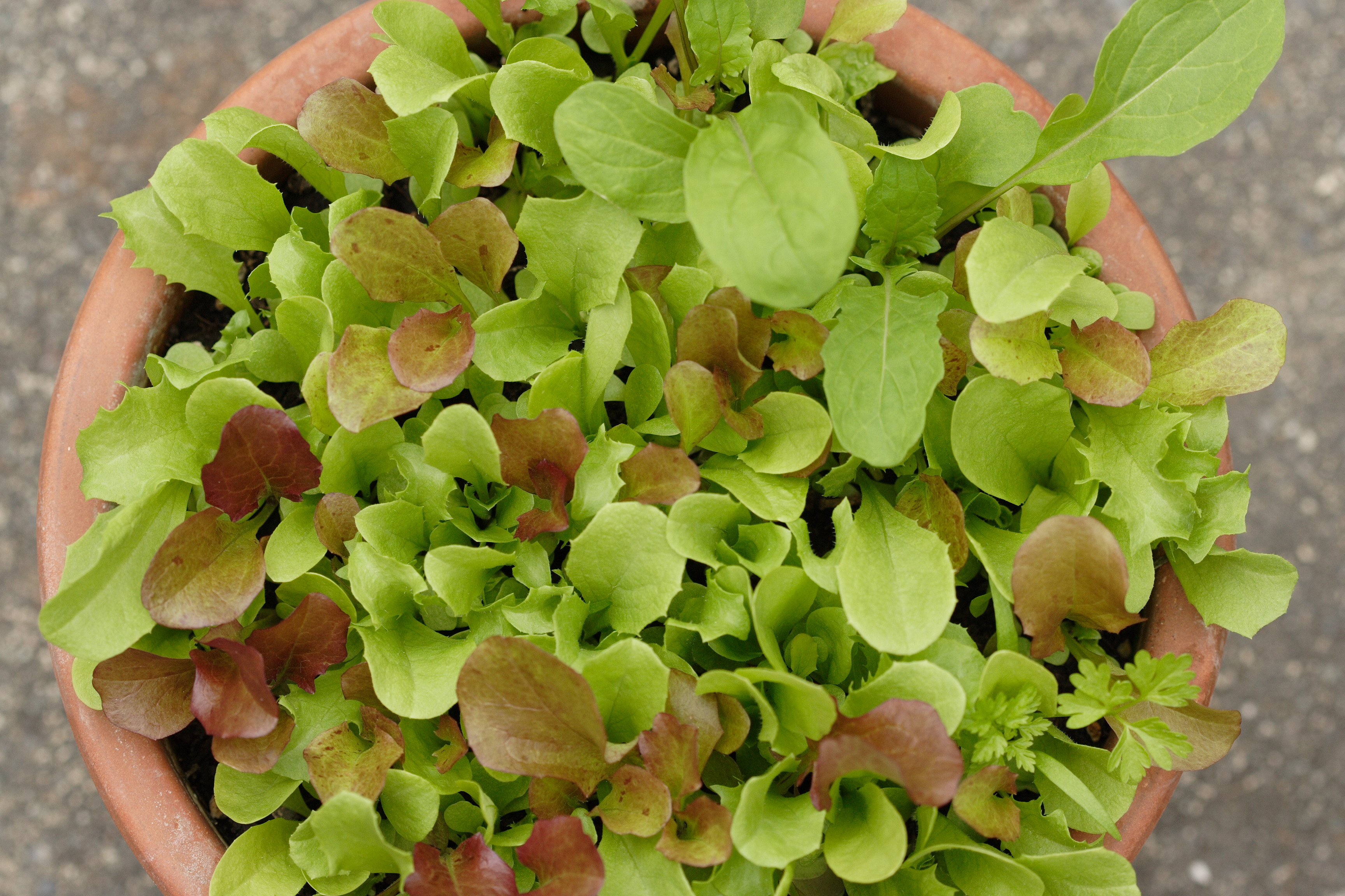 West Coast Seeds West Coast Market Mix includes several mescluns that only require 4 hours of sunlight a day–a great choice for a shady space in your garden or patio. Harvest the tender leaves by cutting them close to the plant’s base and you’ll get at least two more harvests.