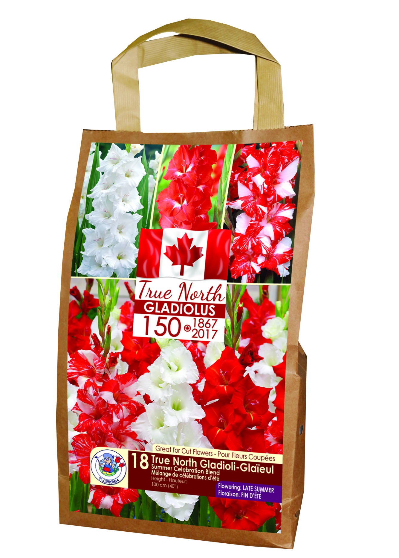 Red and white Gladiolus in a convenient package, available at Canadian garden centres for spring 2017. Photo courtesy of Florissa.